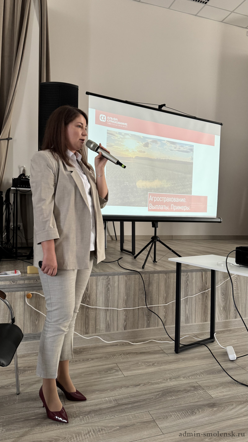 Семён Миронов (директор Смоленского филиала «АльфаСтрахование») подытожил мероприятие обзором лучшего опыта 2025 г. по использованию инструментов агрострахования в различных субъектах РФ.